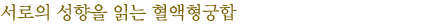 ÀڽŰú ¸Â´Â Ç÷¾×ÇüÀÇ »ç¶÷À» ¸¸³ª¸é ÁÁÀº ¿îÀ» °¡Á®¿ä. Áö±Ý ¿·¿¡ ÀÖ´Â ±× »ç¶÷ÀÇ Ç÷¾×Çü ¹»±î¿ä?